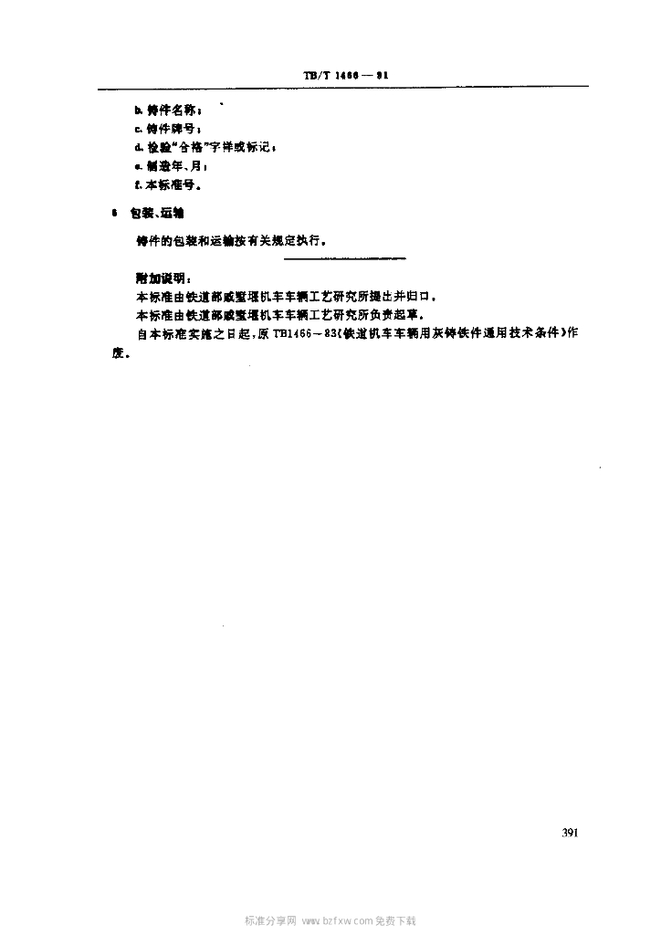 TB/T 1466-1991 铁道机车车辆用灰铸铁件通用技术条件