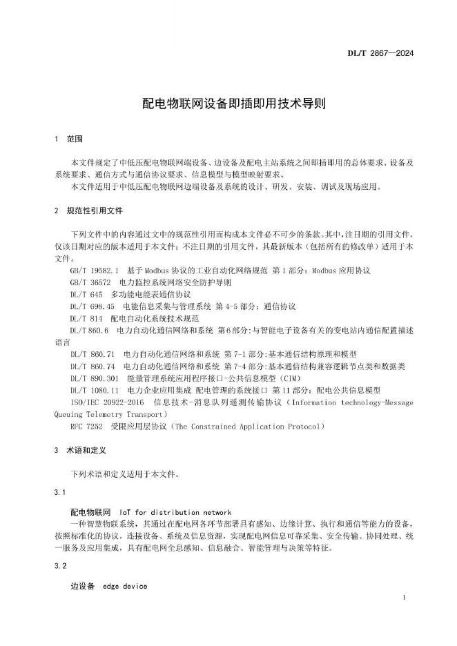 DL/T 2867-2024 配电物联网设备即插即用技术导则