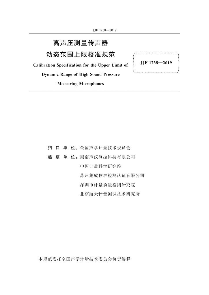 刘湘衡(湖南声仪测控科技有限公司)、何龙标(中国计量科学研究院)、周伦彬(苏州集成校准检测认证有限公司)、牛锋(中国计量科学研究院)、张国庆(深圳市计量质量检测研究院)、闫磊(北京航天计量测试技术研究所)、谭家腾(湖南声仪测控科技有限公司)