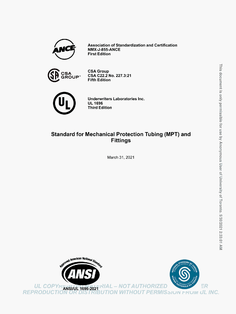 UL 1696 STANDARD FOR SAFETY Mechanical Protection Tubing (MPT)and Fittings