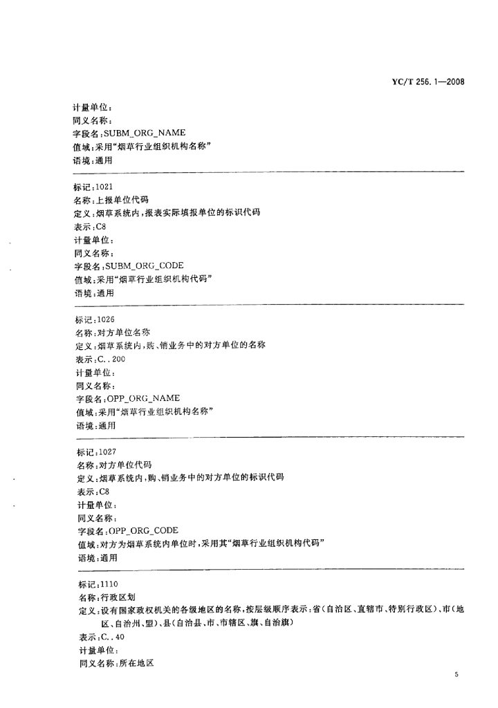 YC/T 256.1-2008 烟草行业工商统计数据元 第1部分:数据元目录