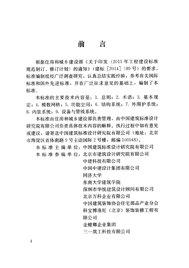 中国建筑标准设计研究院有限公司、北京市建筑设计研究院有限公司、中建科技有限公司、中国中建设计集团有限公司、同济大学、东南大学建筑学院、深圳市华悦建筑设计顾问有限公司、北京万科企业有限公司、中国建筑装饰协会住宅部品产业分会、科宝博洛尼(北京)装饰装修工程有限公司、金螳螂企业集团、三一筑工科技有限公司、北京维石住工科技有限公司、深圳市高新建混凝土有限公司、河北奥润顺达窗业有限公司