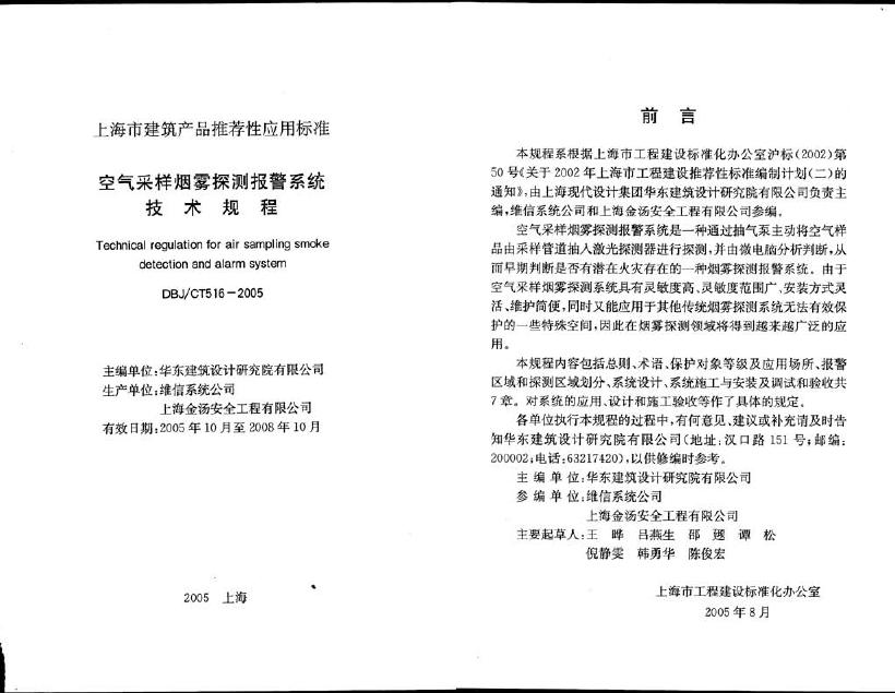 DBJ/CT 516-2005 空气采样烟雾探测报警系统技术规程