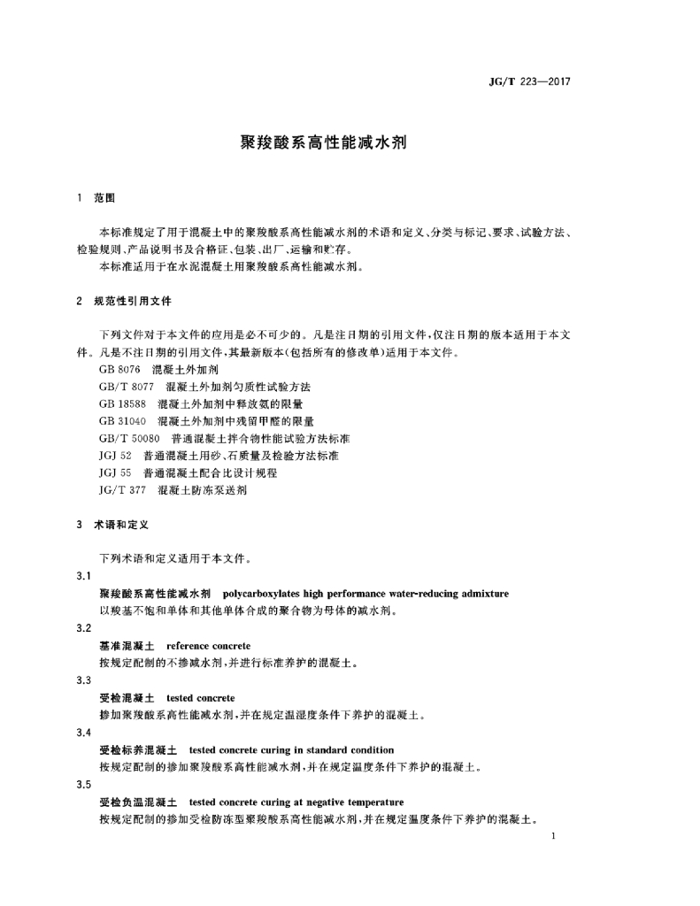 JG/T 223-2017 聚羧酸系高性能减水剂