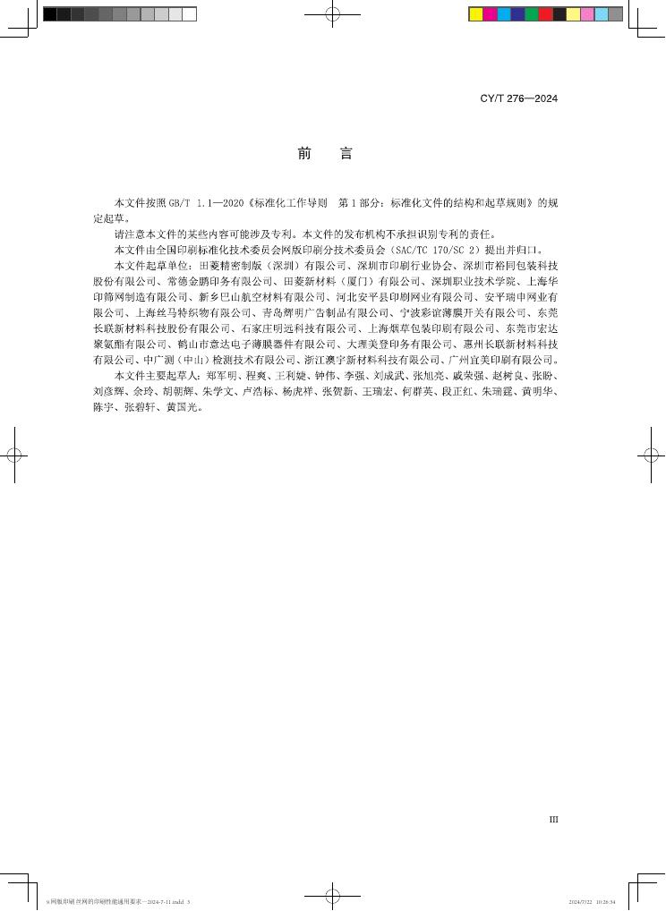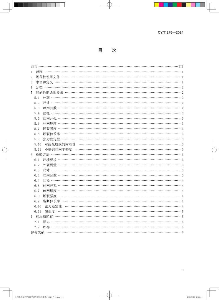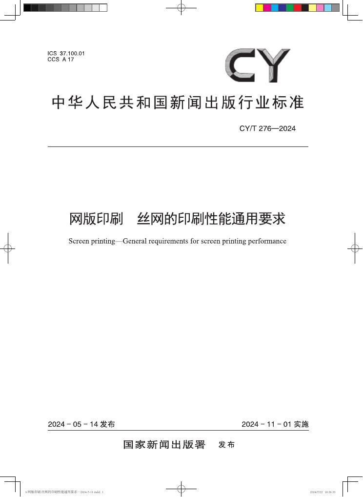 CY/T 276-2024 网版印刷 丝网的印刷性能通用要求