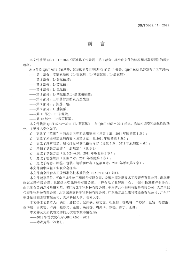 河南巨龙生物工程股份有限公司、安徽丰原发酵技术工程研究有限公司、淮北新旗氨基酸有限公司、武汉远大弘元股份有限公司、中轻食品工业管理中心、中国生物发酵产业协会、山东省食品药品检验研究院、浙江震元生物科技有限公司、宁夏伊品生物科技股份有限公司、天津世纪伟康生物科技有限公司、北京诚志高科生物科技有限公司、广东乐尔康生物科技股份有限公司、广州广电计量检测无锡有限公司、天津科技大学、吉林大学
