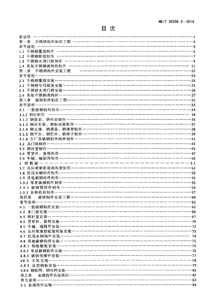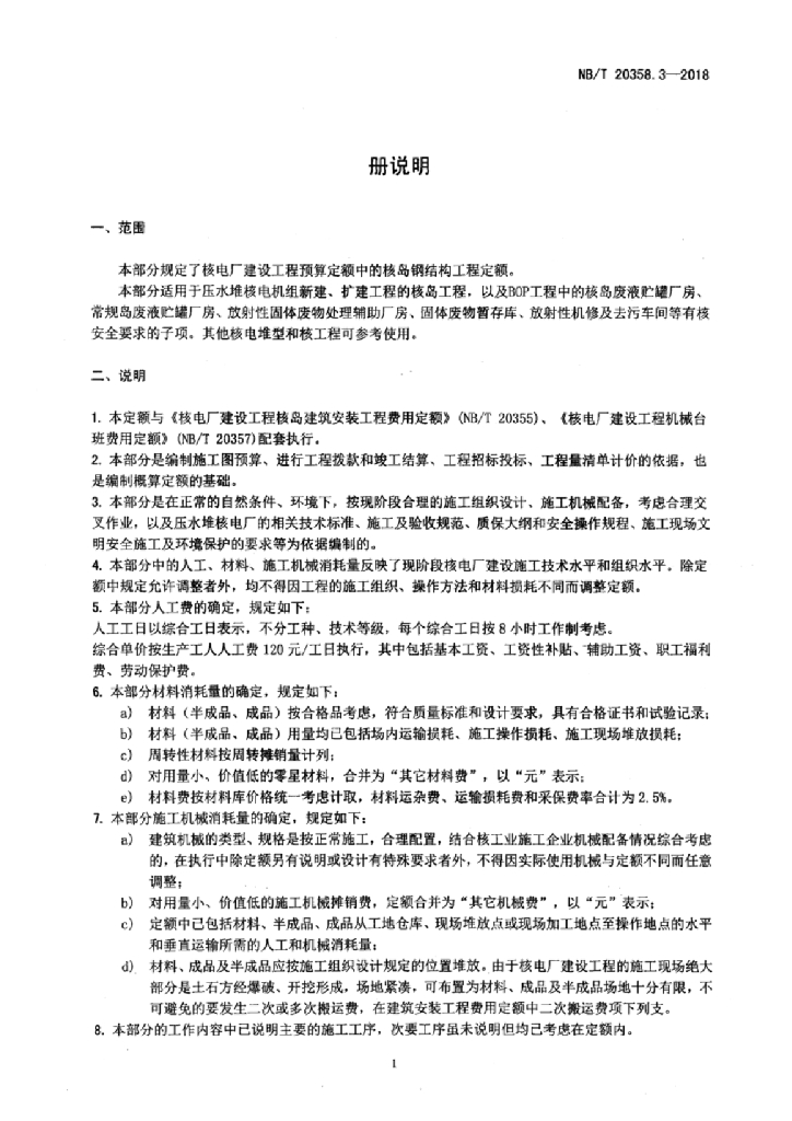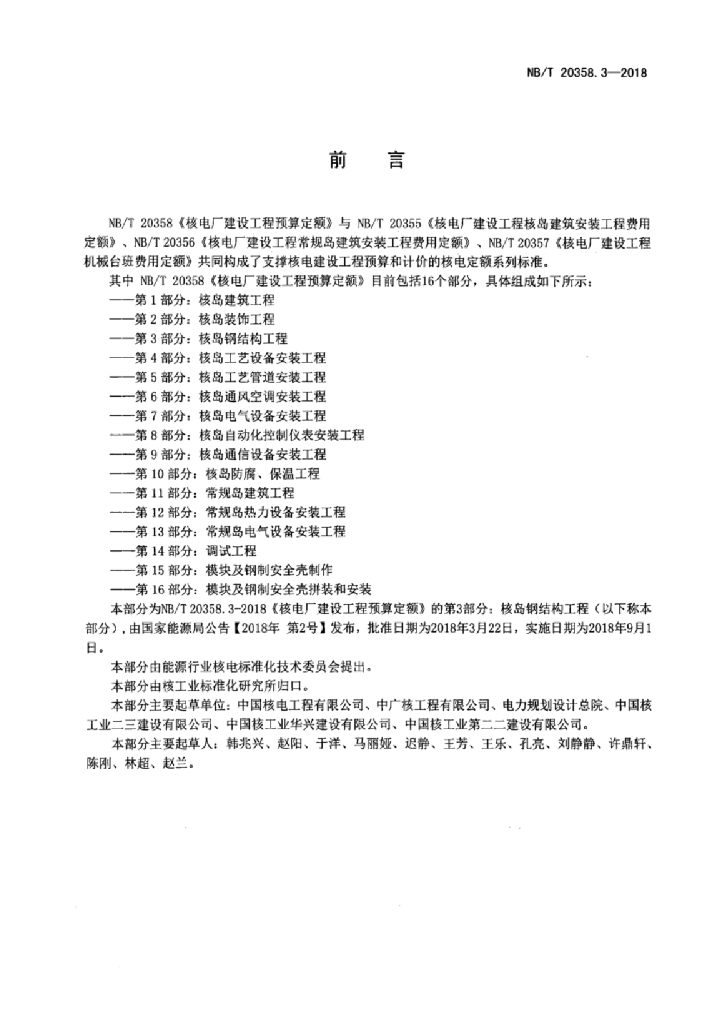 NB/T 20358.3-2018 核电厂建设工程预算定额 第3部分:核岛钢结构工程