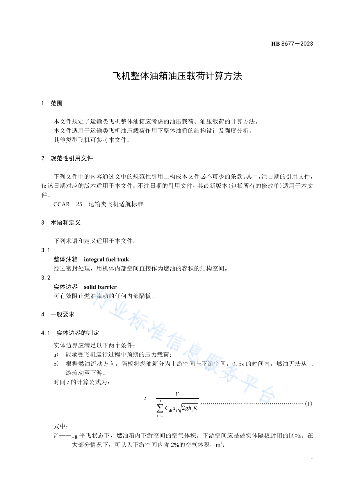 HB 8677-2023 飞机整体油箱油压载荷计算方法