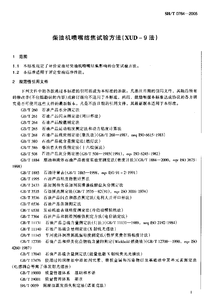 SH/T 0764-2005 柴油机喷嘴结焦试验方法(XUD-9法)