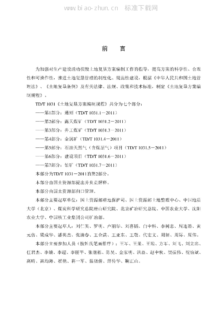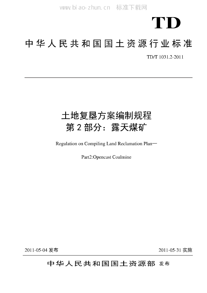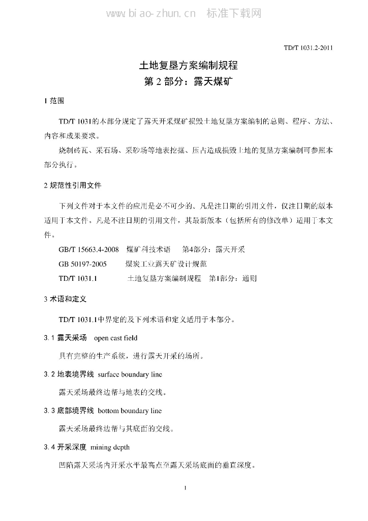 TD/T 1031.2-2011 土地复垦方案编制规程 第2部分:露天煤矿
