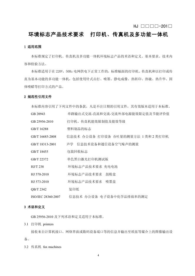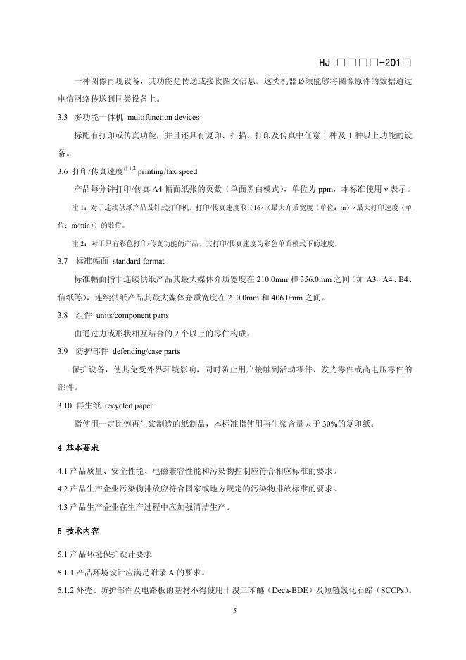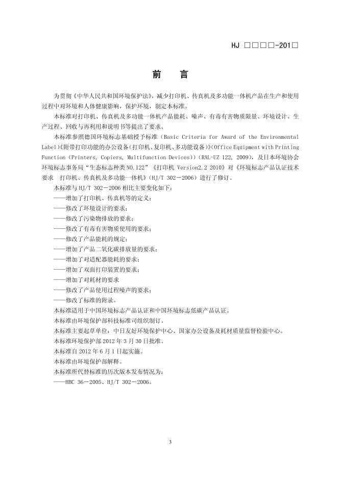 HJ 2512-2012 环境标志产品技术要求 打印机、传真机及多功能一体机