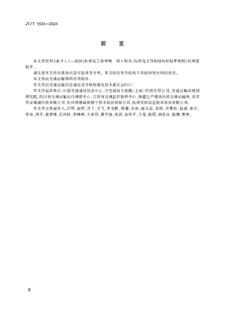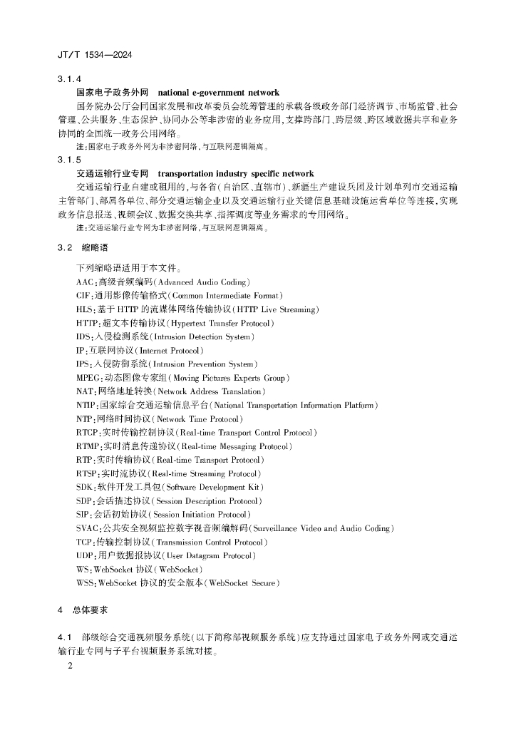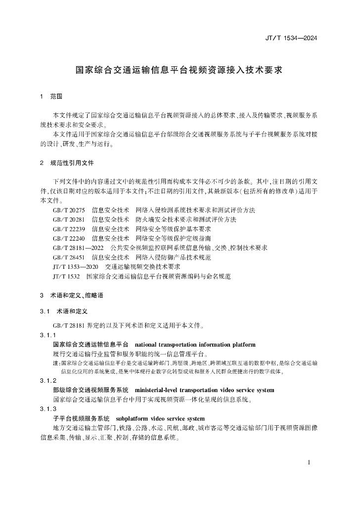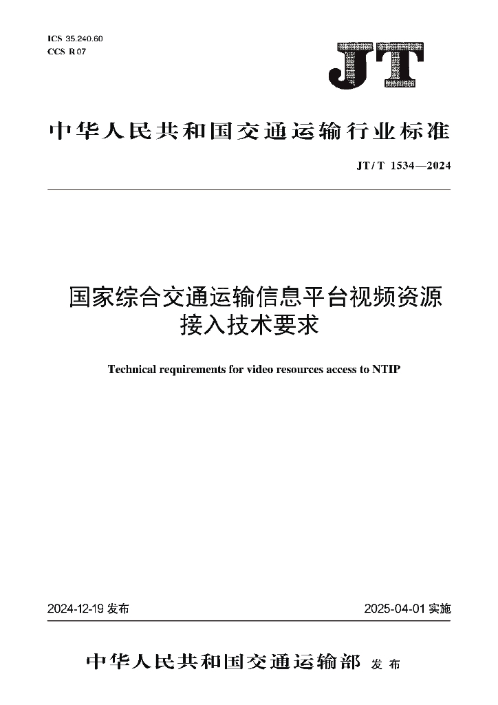 JT/T 1534-2024 国家综合交通运输信息平台视频资源接入技术要求