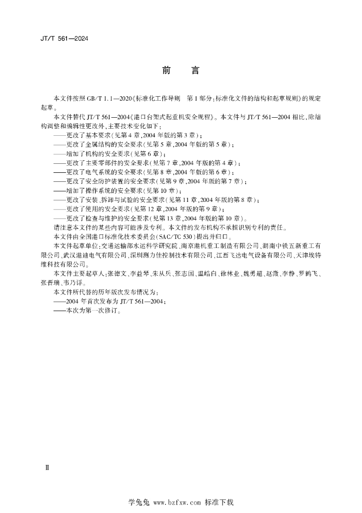 交通运输部水运科学研究院、南京港机重工制造有限公司、湖南中铁五新重工有限公司、武汉港迪电气有限公司、深圳测力佳控制技术有限公司、江西飞达电气设备有限公司、天津埃特维科技有限公司