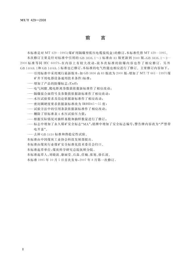 MT 429-2008 煤矿用隔爆型低压电缆接线盒