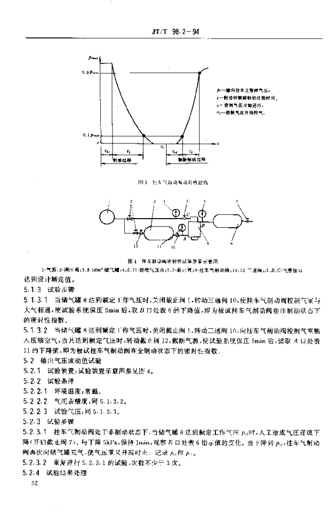 JT/T 98.2-1994 挂车单管路气制动阀台架试验方法