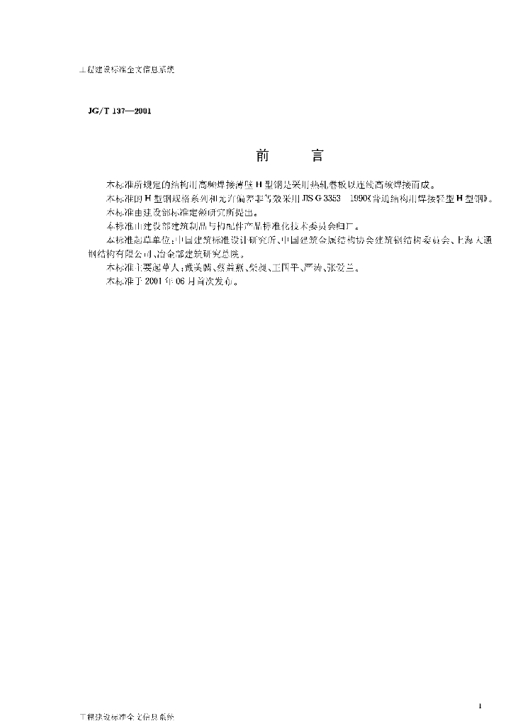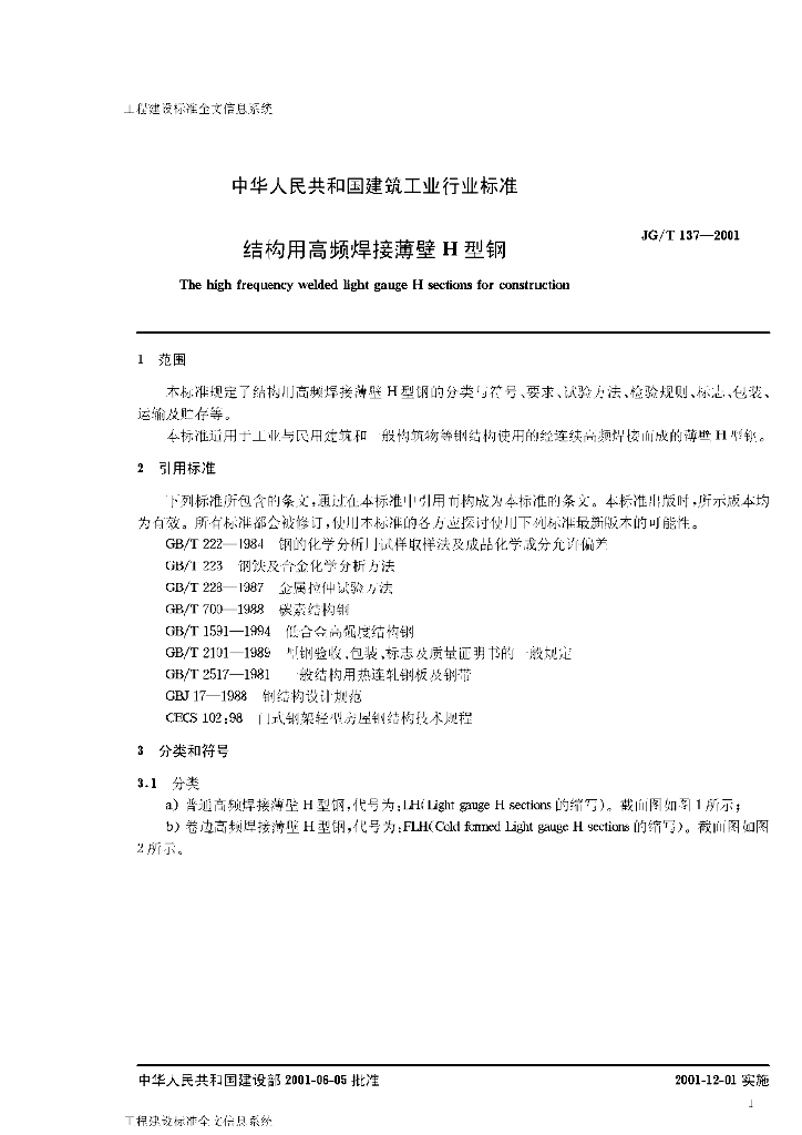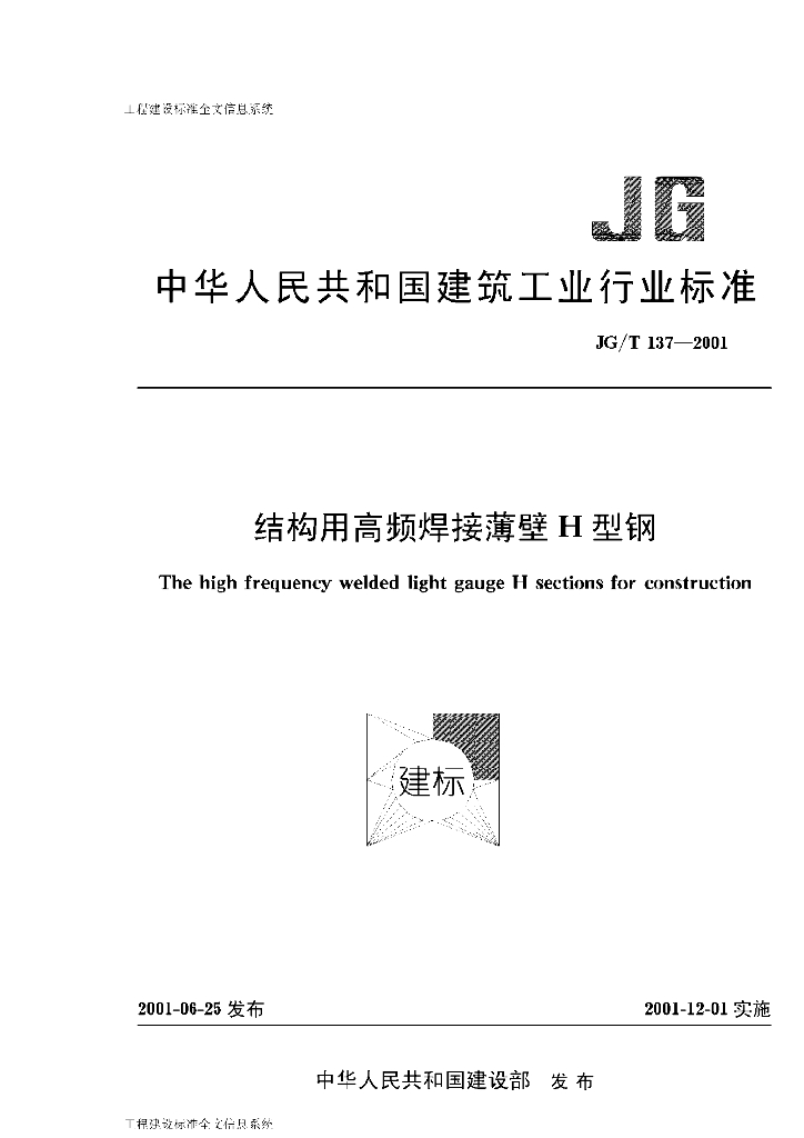 JG/T 137-2001 结构用高频焊接薄壁H型钢