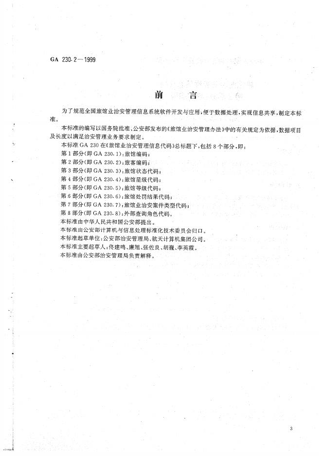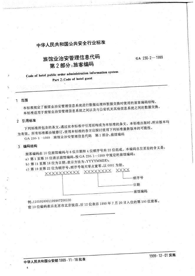 GA 230.2-1999 旅馆业治安管理信息代码 第二部分 旅客编码