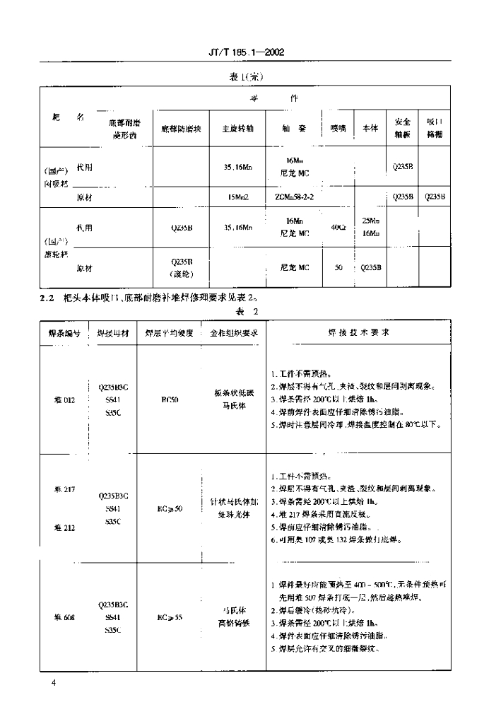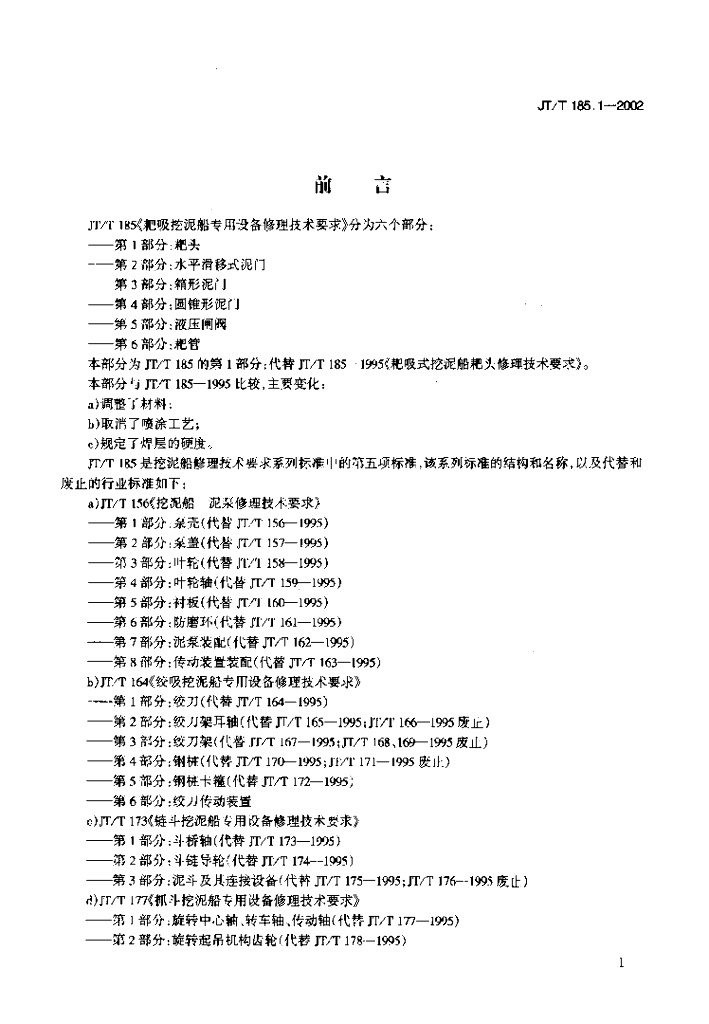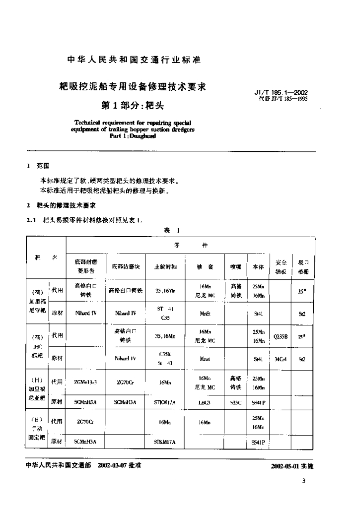 JT/T 185.1-2002 耙吸挖泥船专用设备修理技术要求 第1部分:耙头