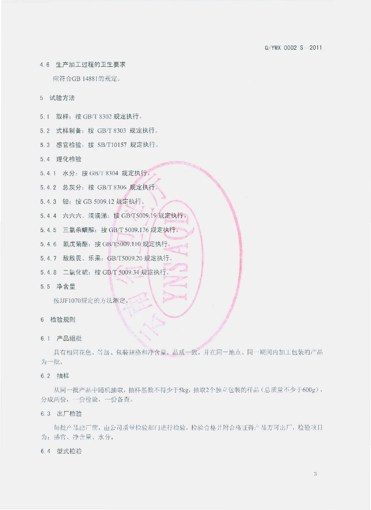 Q/YWX 0002S-2011 代用茶