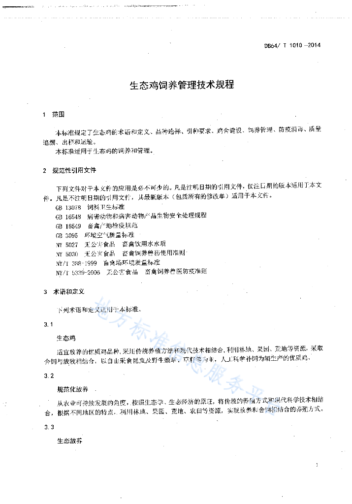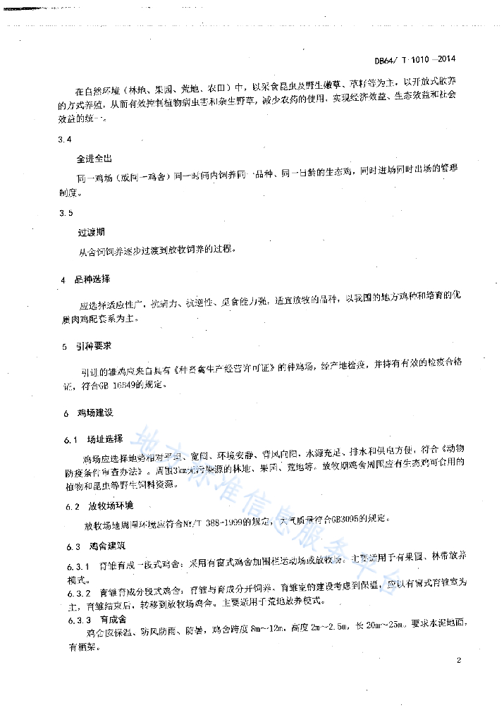 DB64/T 1010-2014 生态鸡饲养管理技术规程