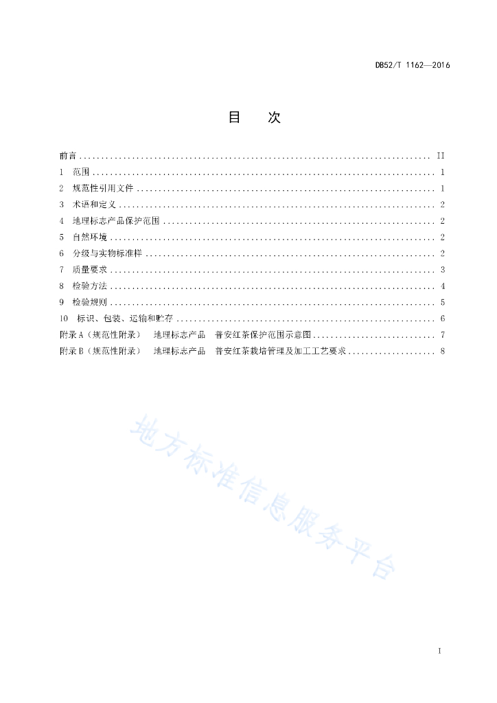 DB52/T 1162-2016 地理标志产品 普安红茶
