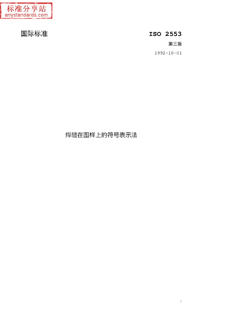 ISO 2553-1992 中文版 焊接、硬钎焊和软钎焊接头在图样上的表示方法