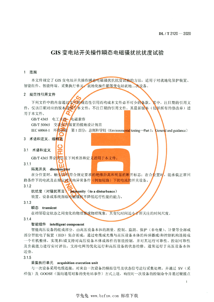 DL/T 2120-2020 GIS变电站开关操作瞬态电磁骚扰抗扰度试验