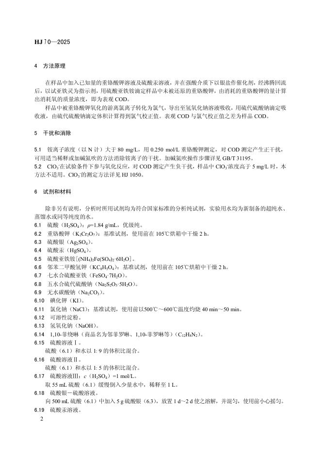 HJ 70-2025 水质 化学需氧量的测定 氯气校正法
