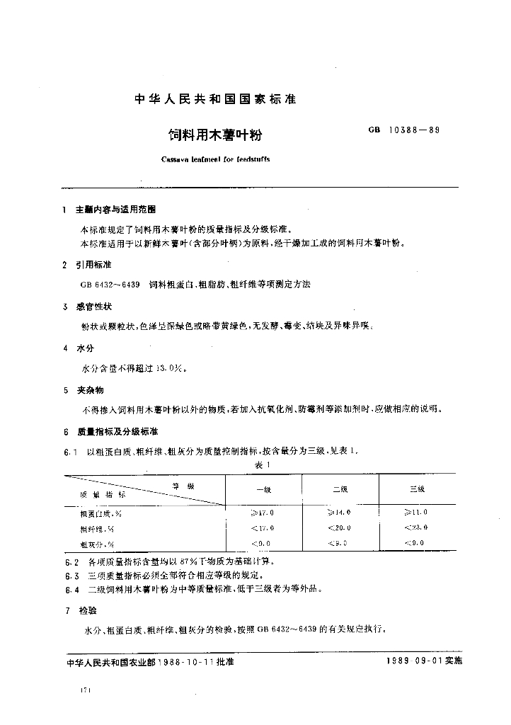 NY/T 139-1989 饲料用木薯叶粉