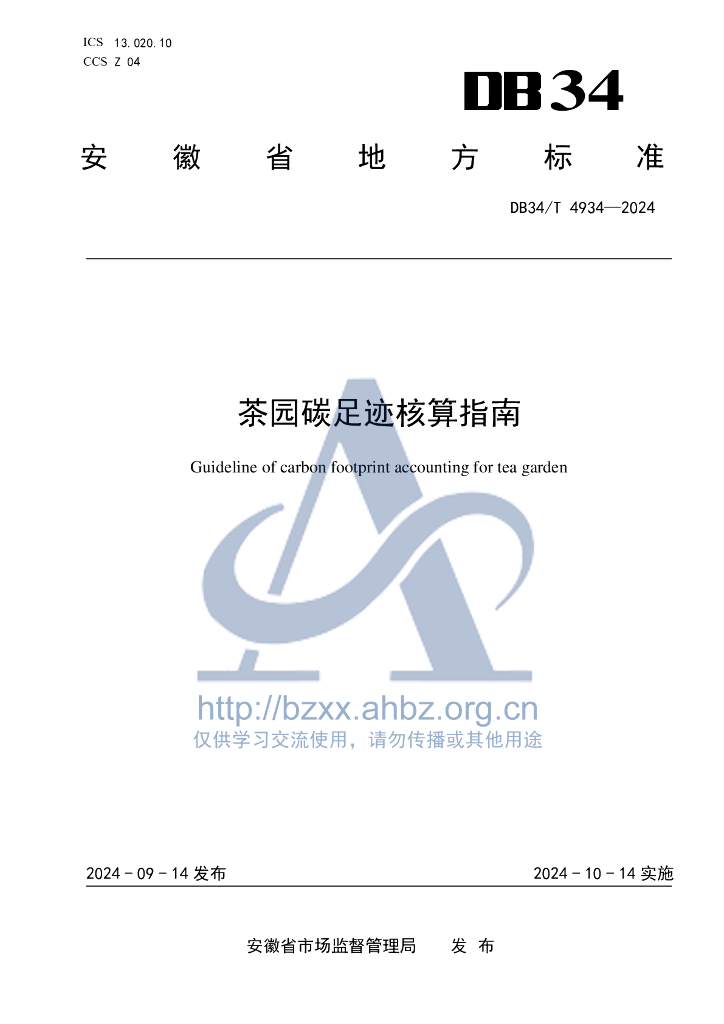 DB34/T 4934-2024 茶园碳足迹核算指南