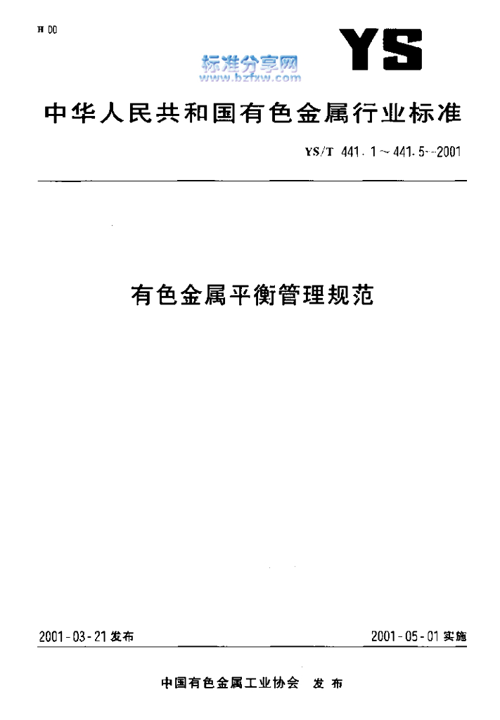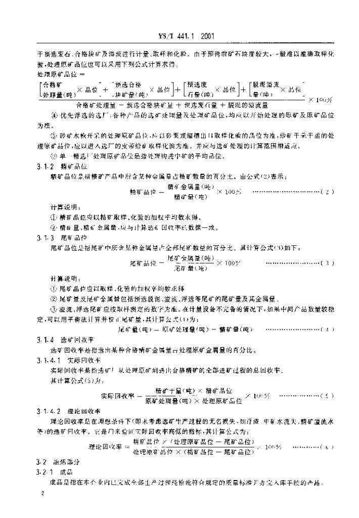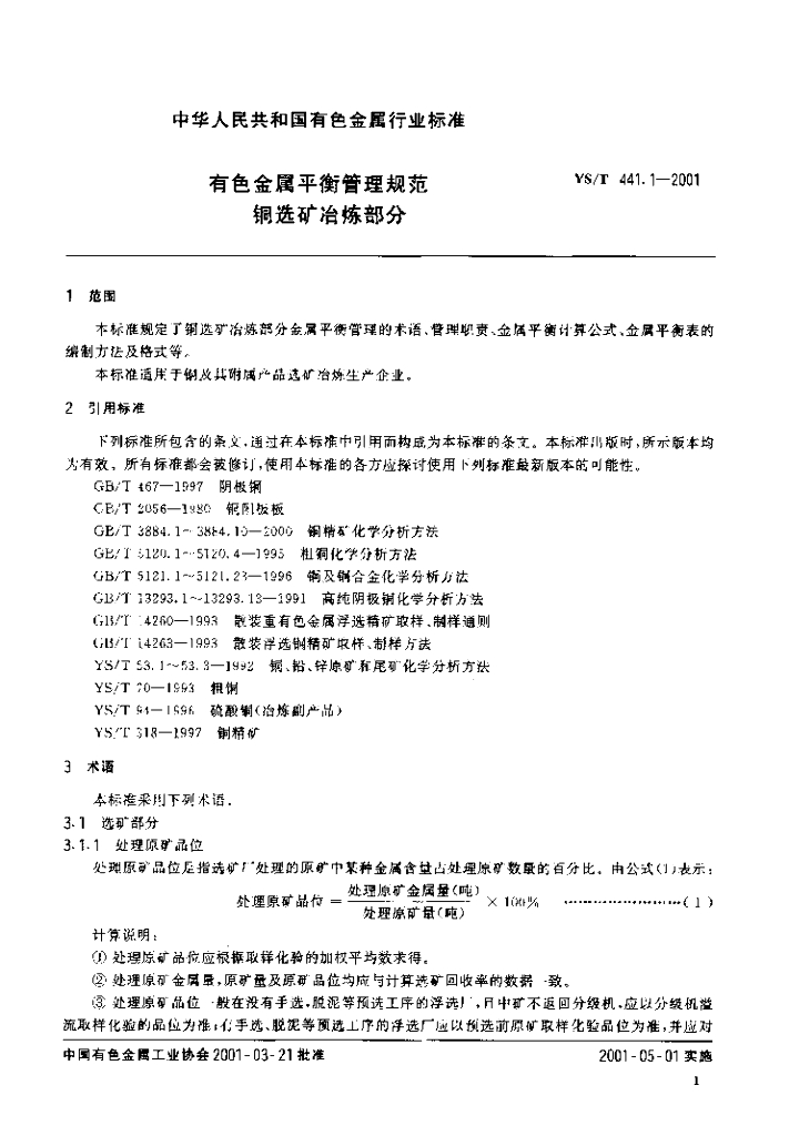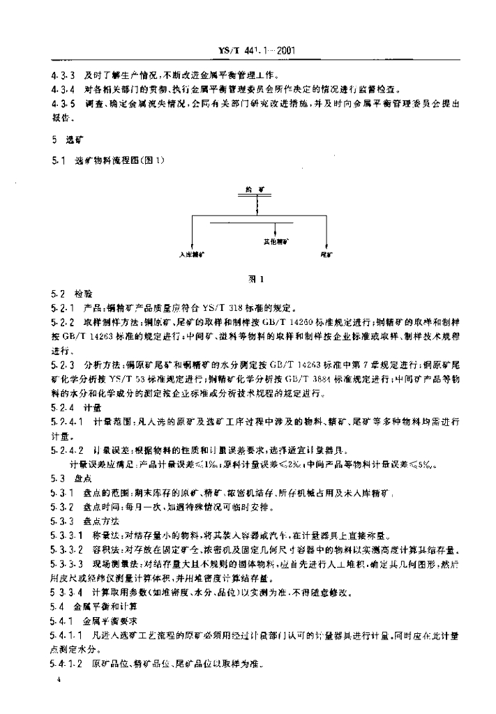 YS/T 441.1-2001 有色金属平衡管理规范铜选矿冶炼部分