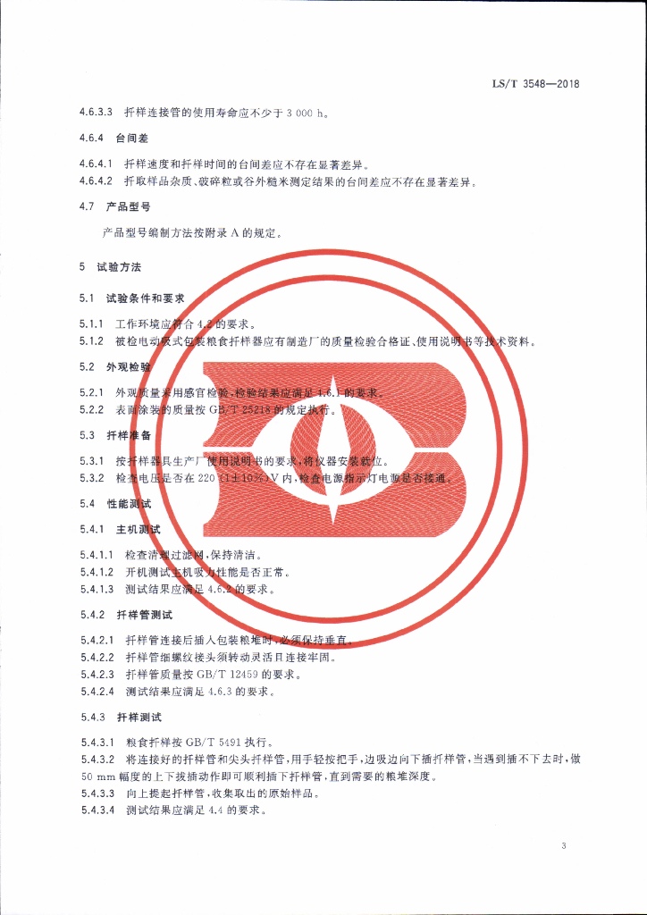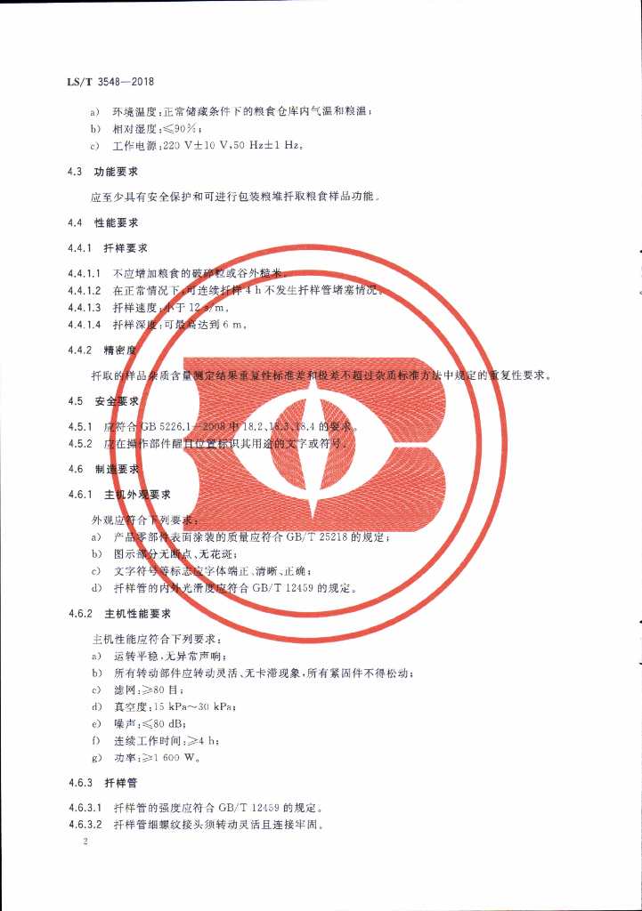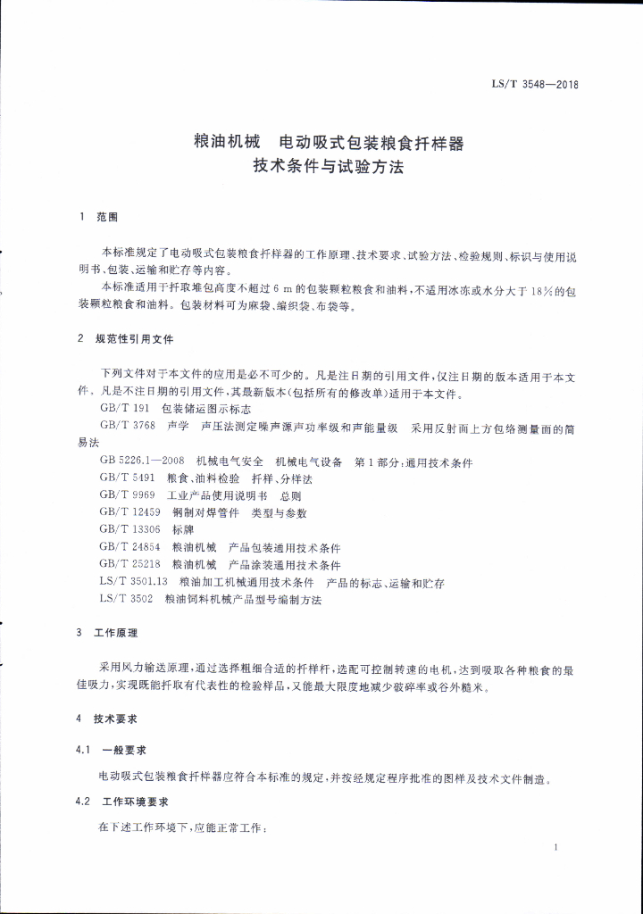 LS/T 3548-2018 粮油机械 电动吸式包装粮食扦样器技术条件与试验方法