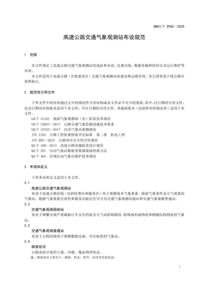 DB41/T 2965-2025 高速公路交通气象观测站布设规范
