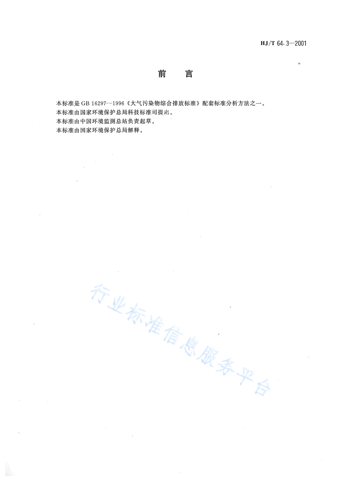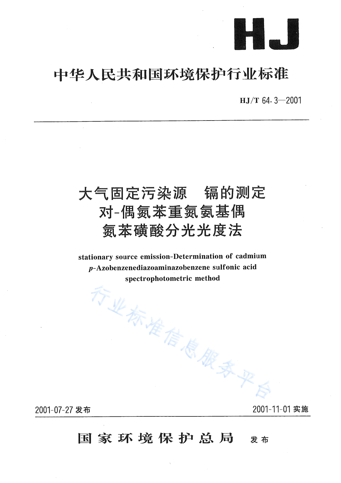 HJ/T 64.3-2001 大气固定污染源 镉的测定 对-偶氮苯重氮氨基偶氮苯磺酸分光光度法