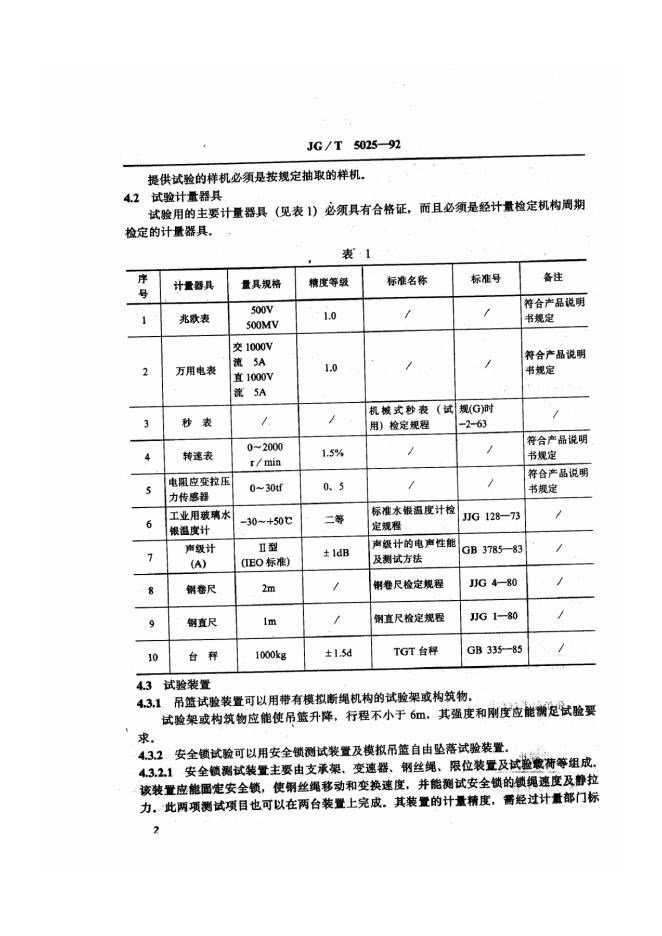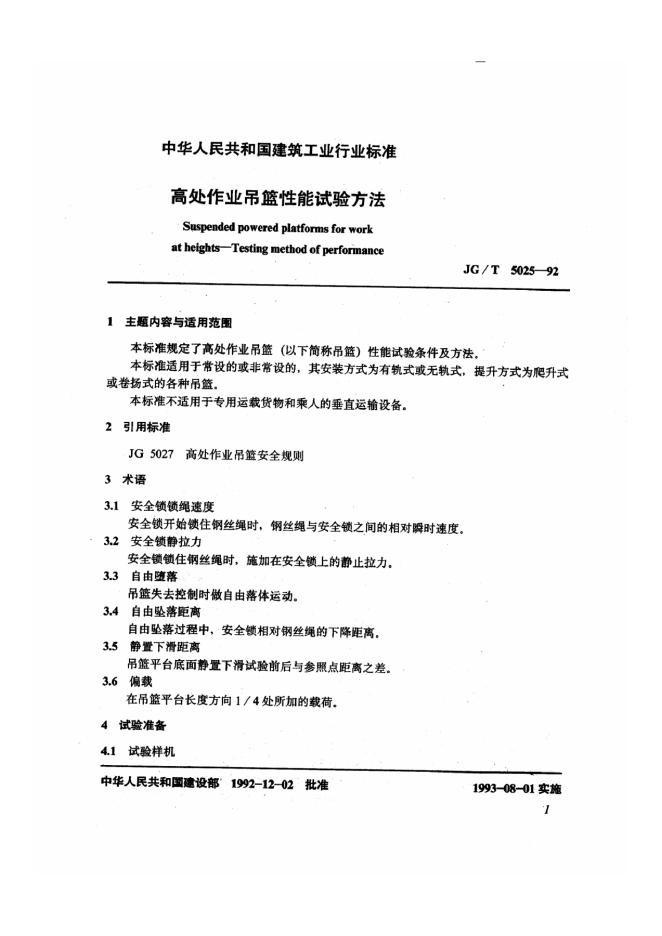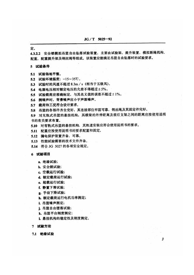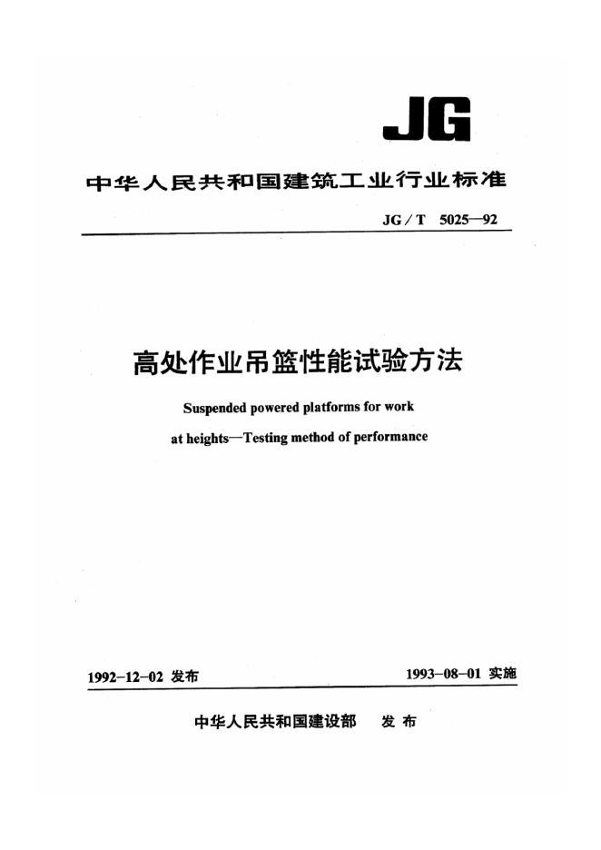 JG/T 5025-1992 高处作业吊篮性能试验方法