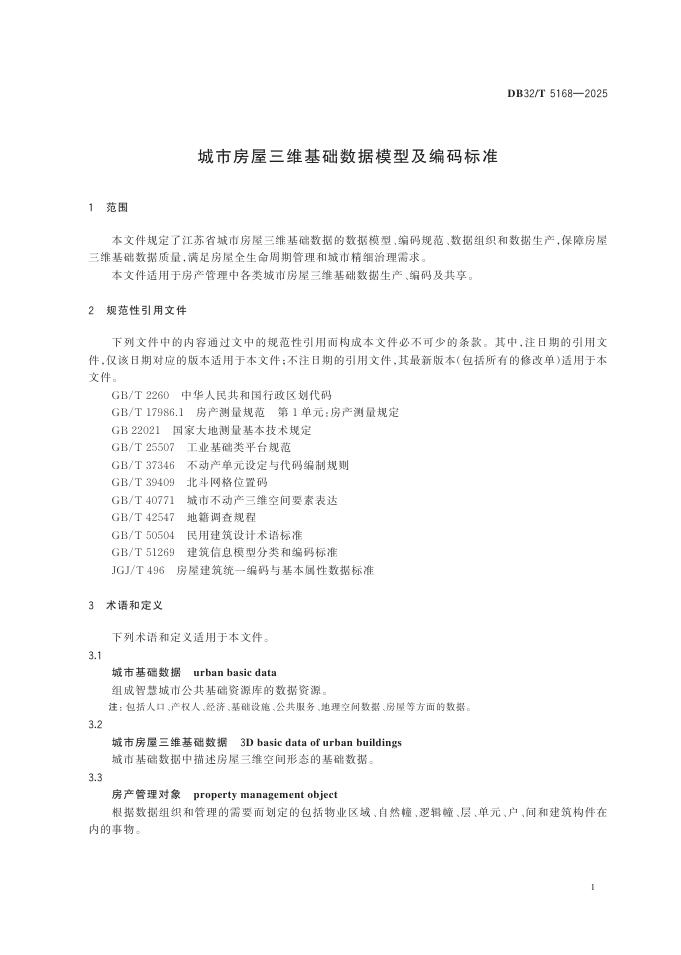 DB32/T 5168-2025 城市房屋三维基础数据模型及编码标准