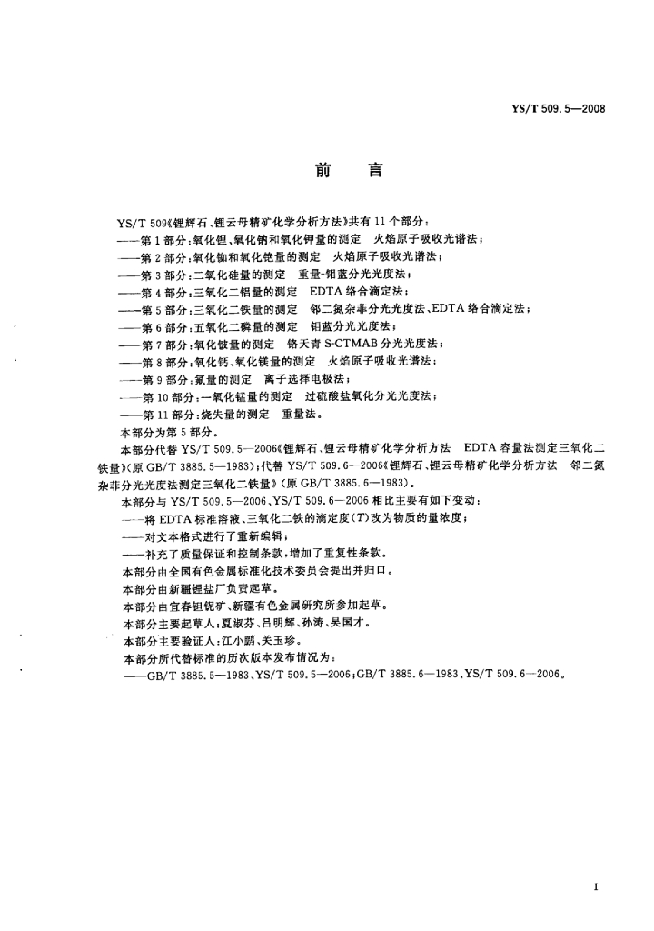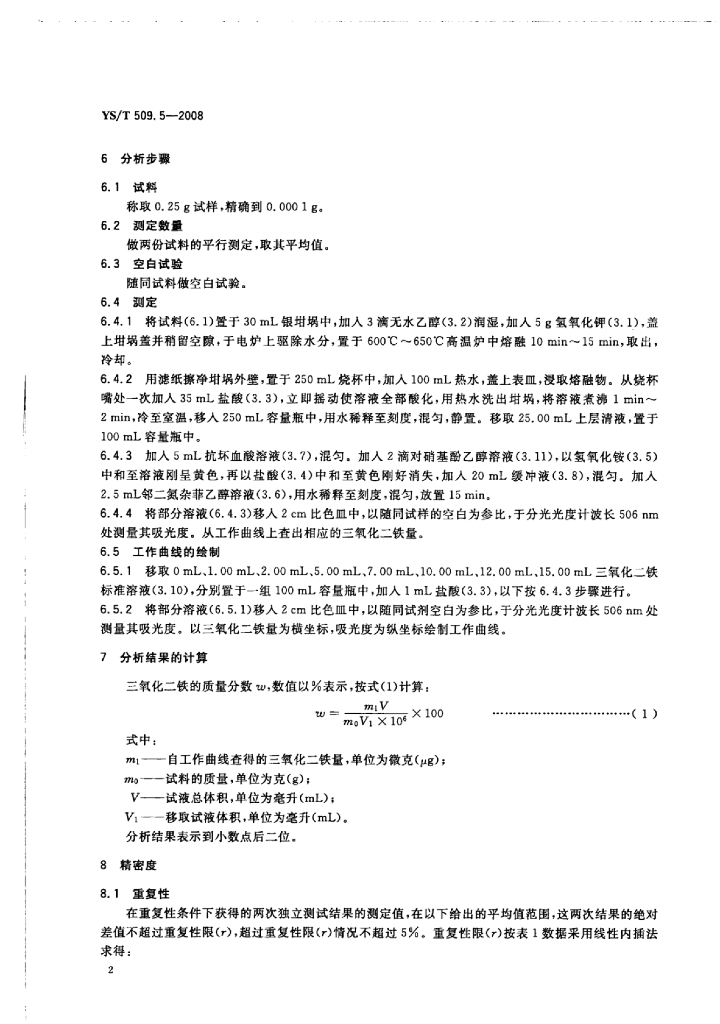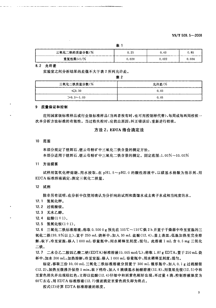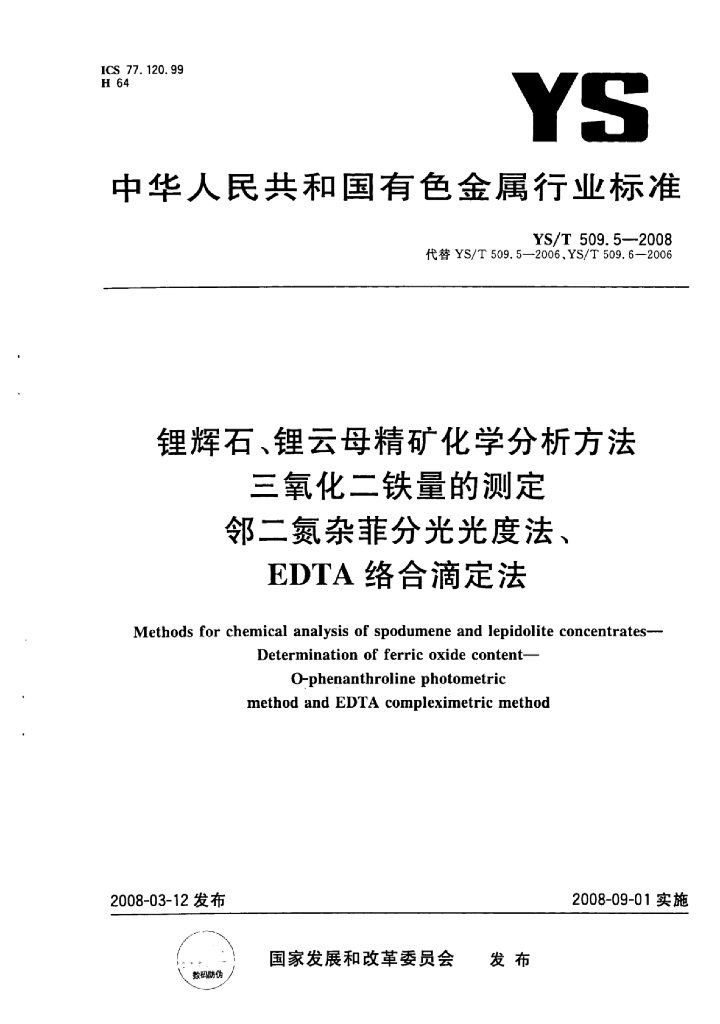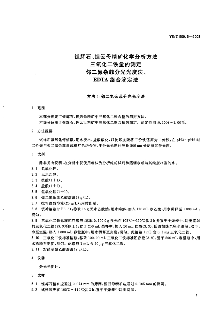 YS/T 509.5-2008 锂辉石、锂云母精矿化学分析方法三氧化二铁量的测定邻二氮杂菲分光光度法、EDTA络合滴定法