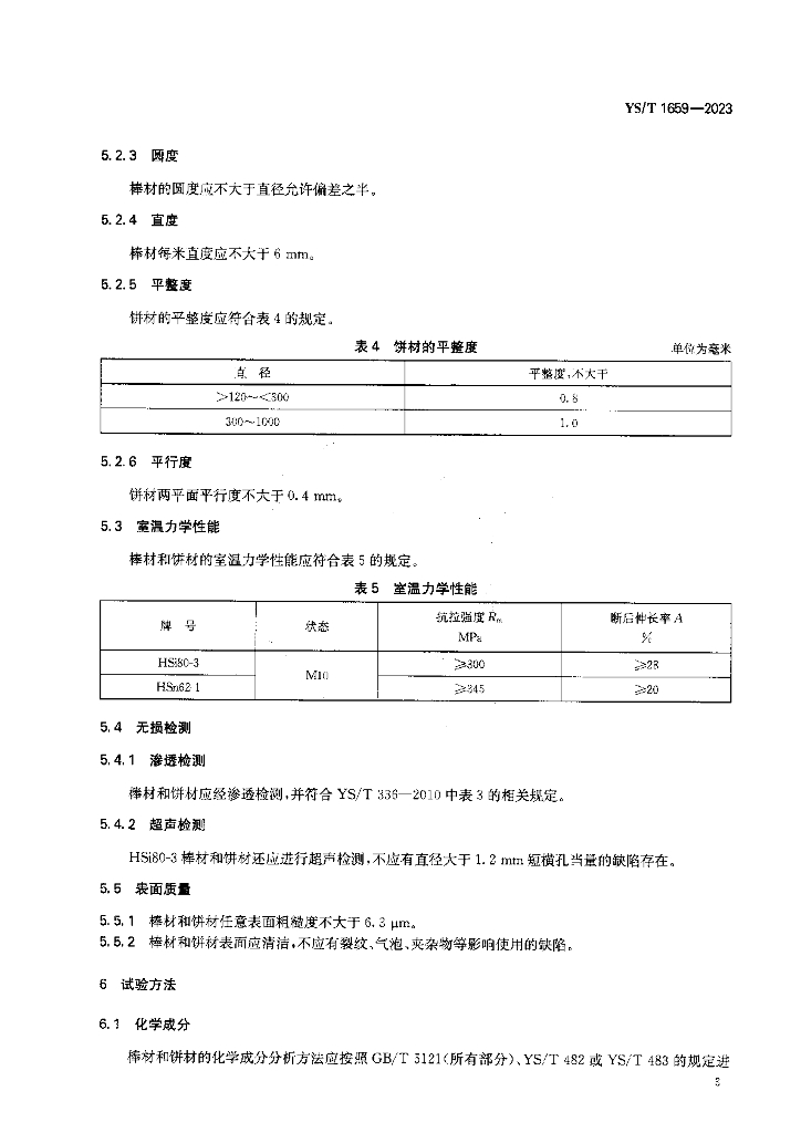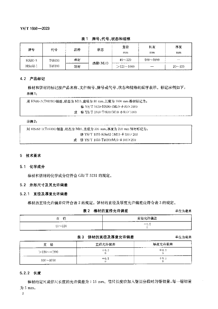 YS/T 1659-2023 舰船用耐蚀黄铜锻制棒材和饼材