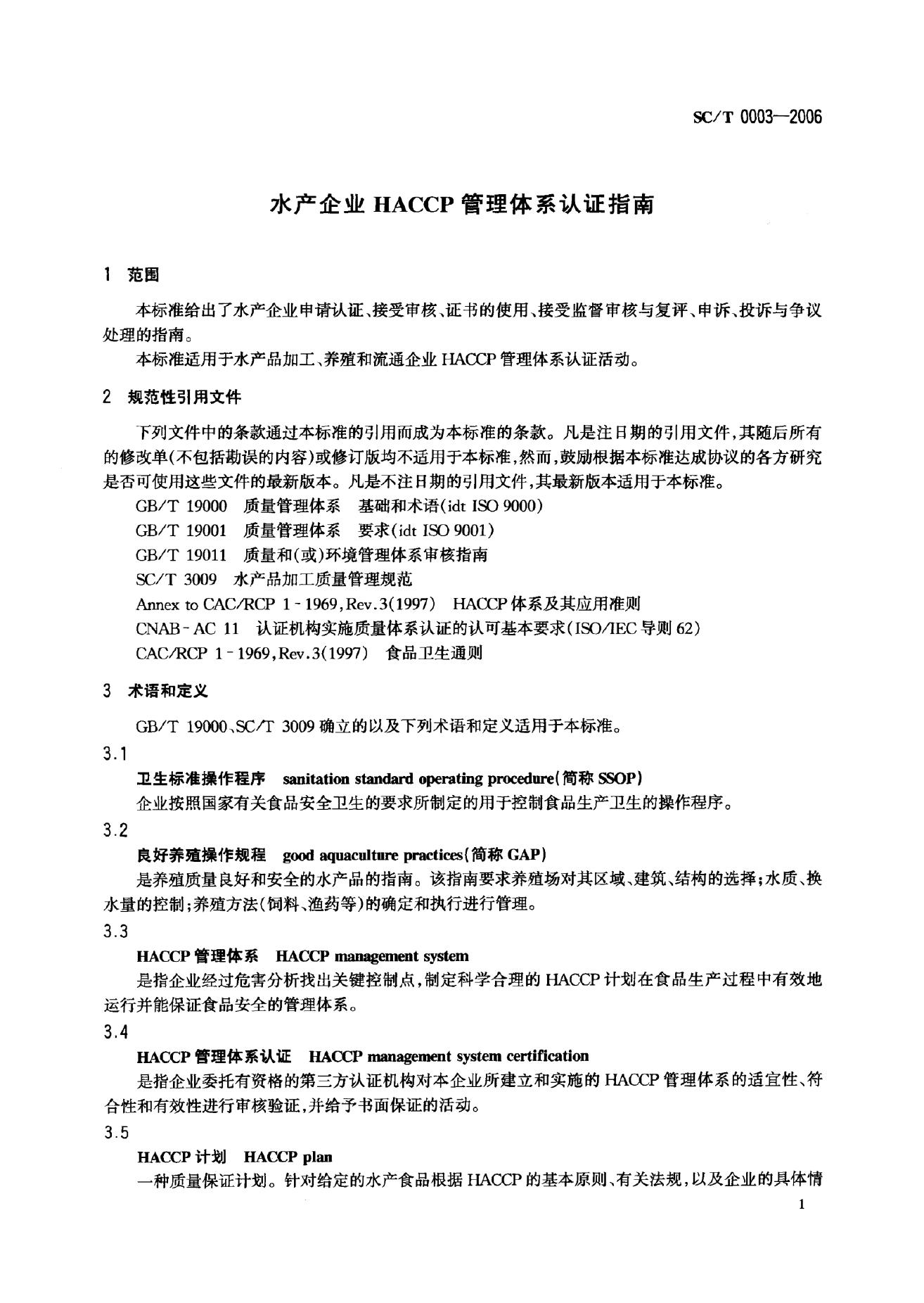 SC/T 0003-2006 水产企业HACCP管理体系认证指南