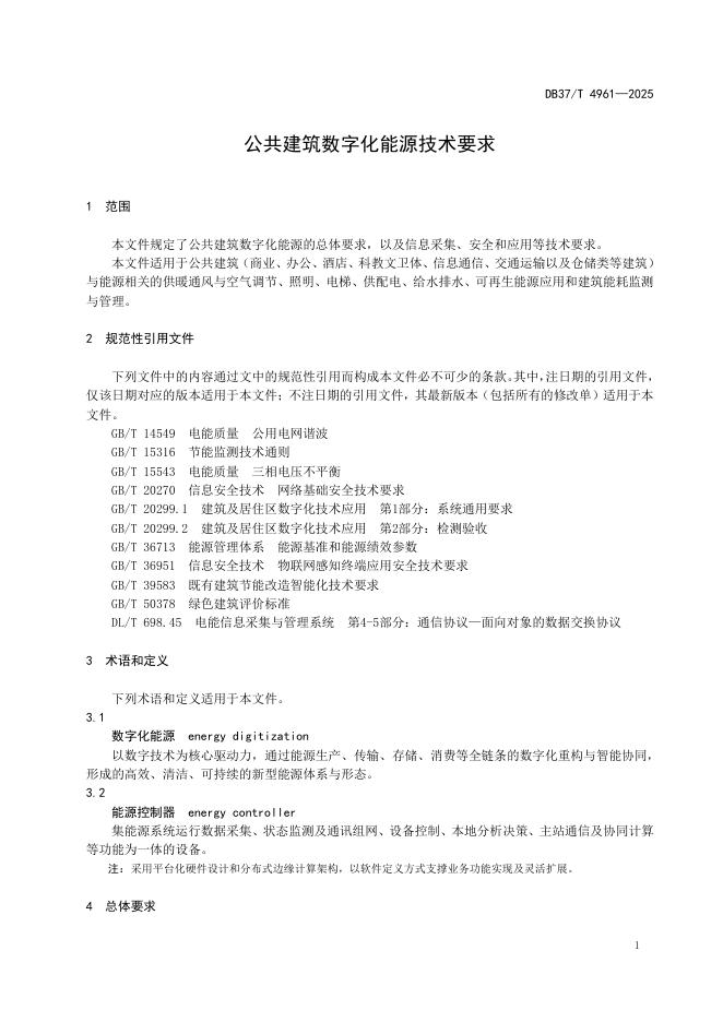 DB37/T 4961-2025 公共建筑数字化能源技术要求