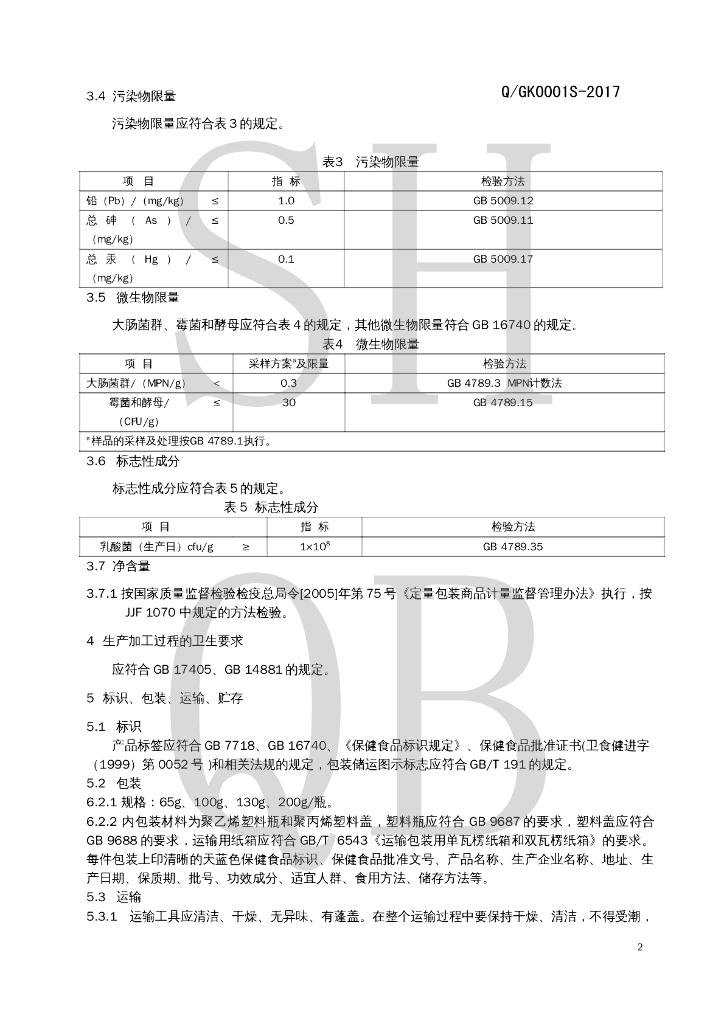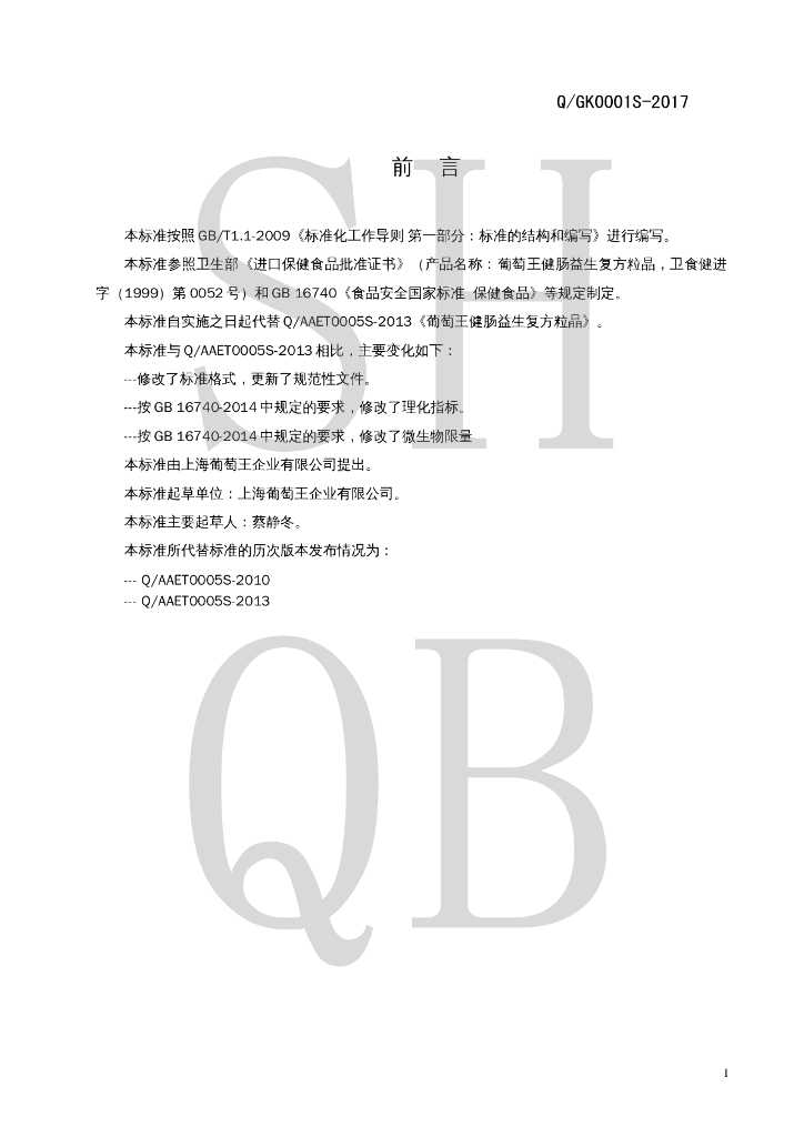 Q/GK 0001S-2017 葡萄王健肠益生复方粒晶