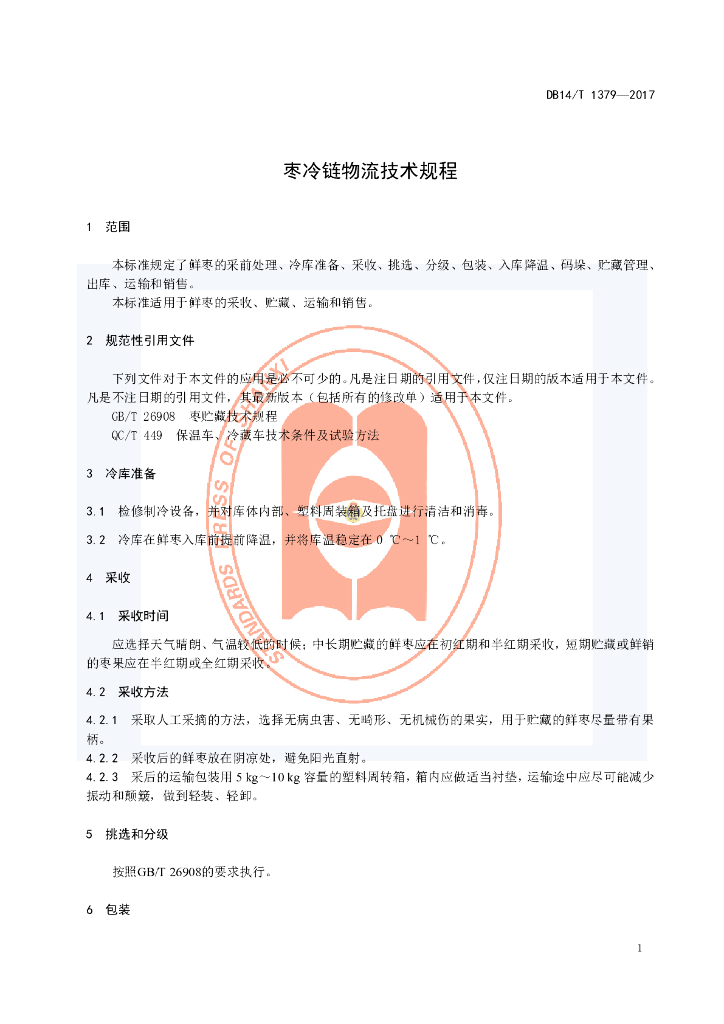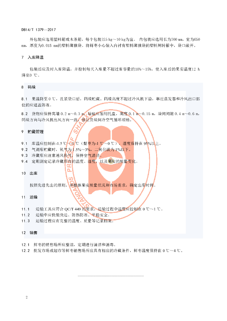 DB14/T 1379-2017 鲜枣冷链物流技术规程