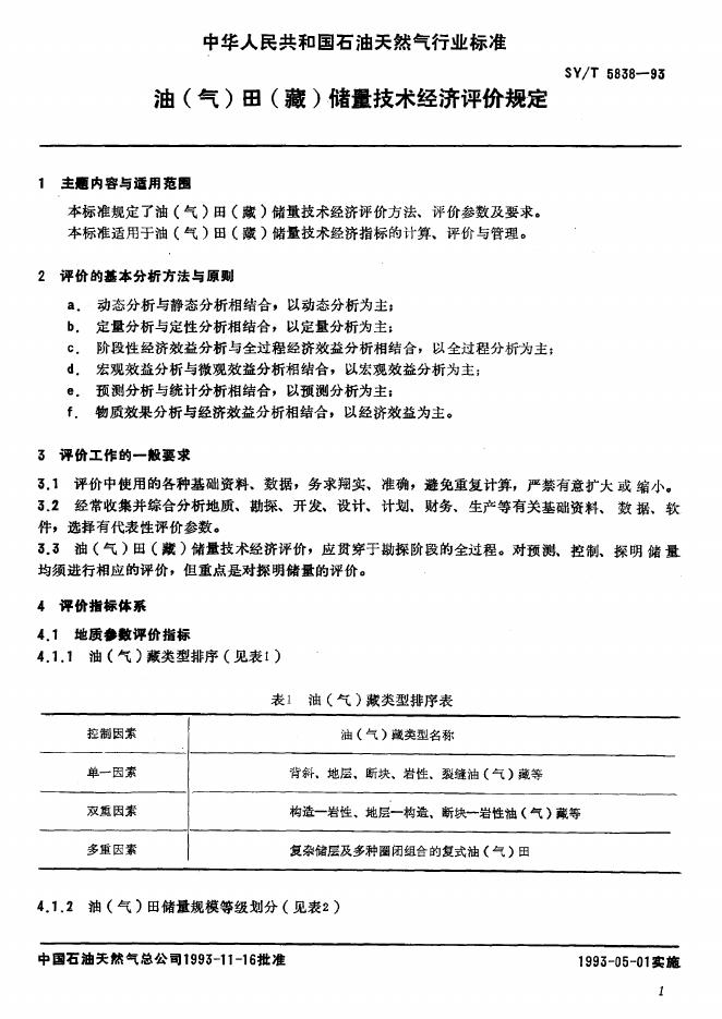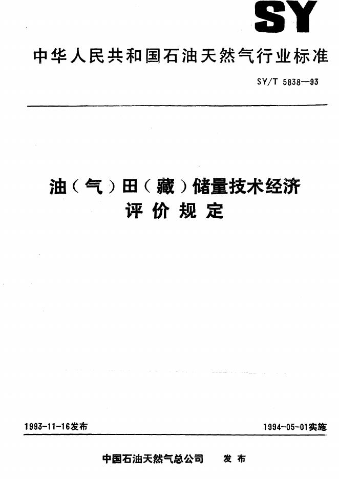 SY/T 5838-1993 油气田藏储量技术经济评价规定
