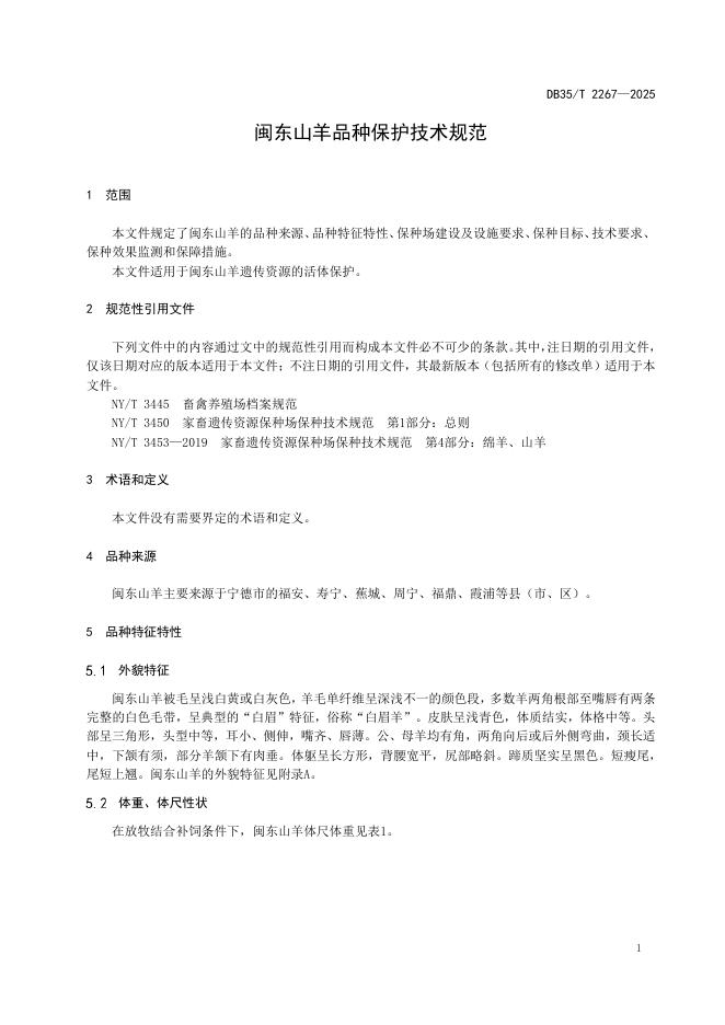 DB35/T 2267-2025 闽东山羊品种保护技术规范