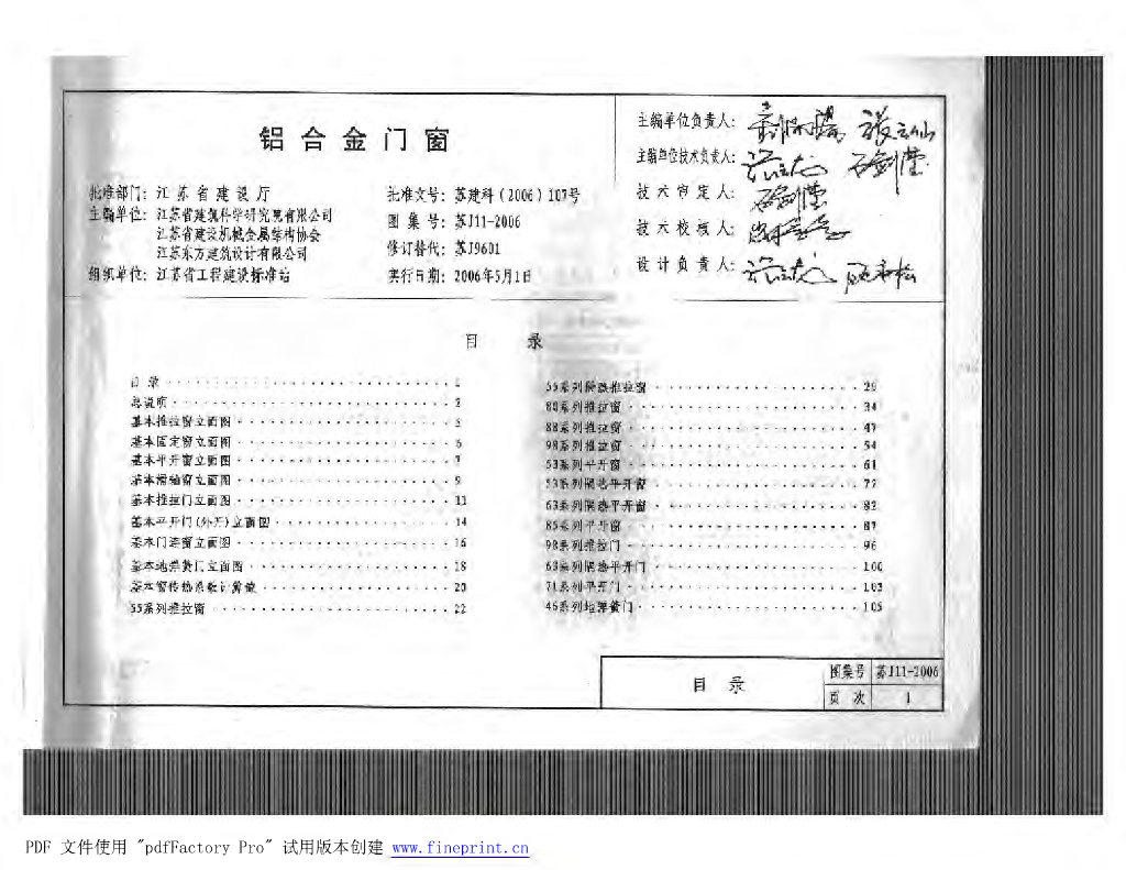 苏J11-2006 铝合金门窗图集