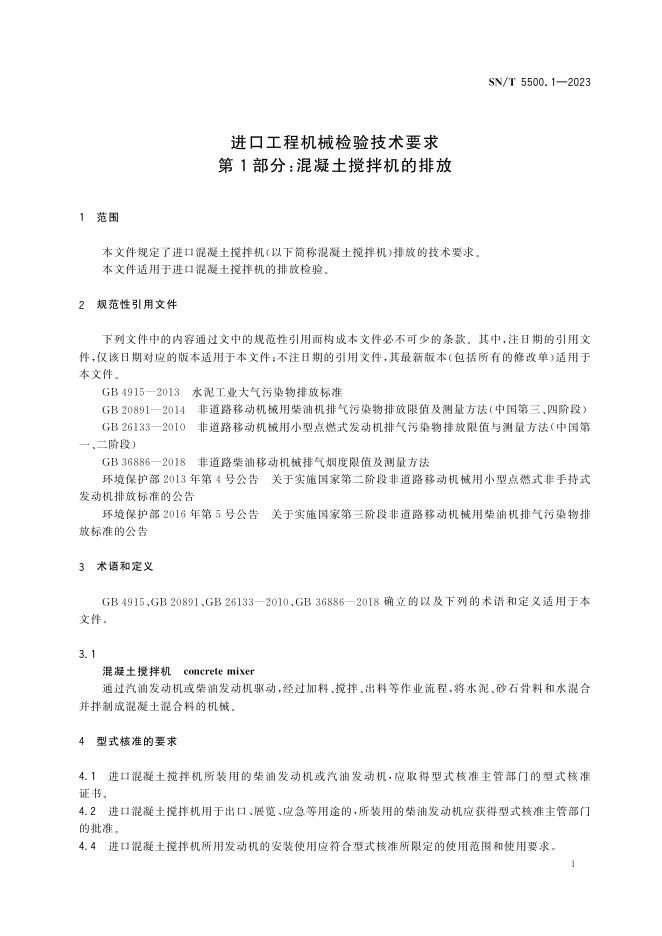 SN/T 5500.1-2023 进口工程机械检验技术要求 第1部分:混凝土搅拌机的排放