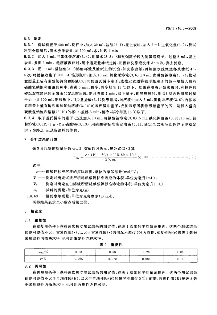 YS/T 716.5-2009 黑铜化学分析方法 第5部分:锡量的测定碘酸钾滴定法