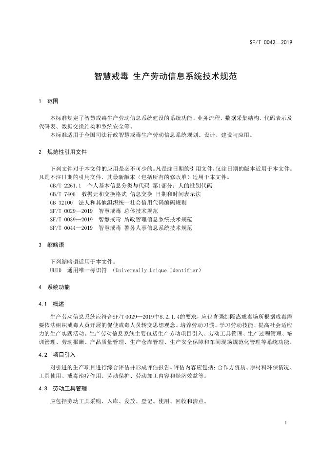 SF/T 0042-2019 智慧戒毒 生产劳动信息系统技术规范