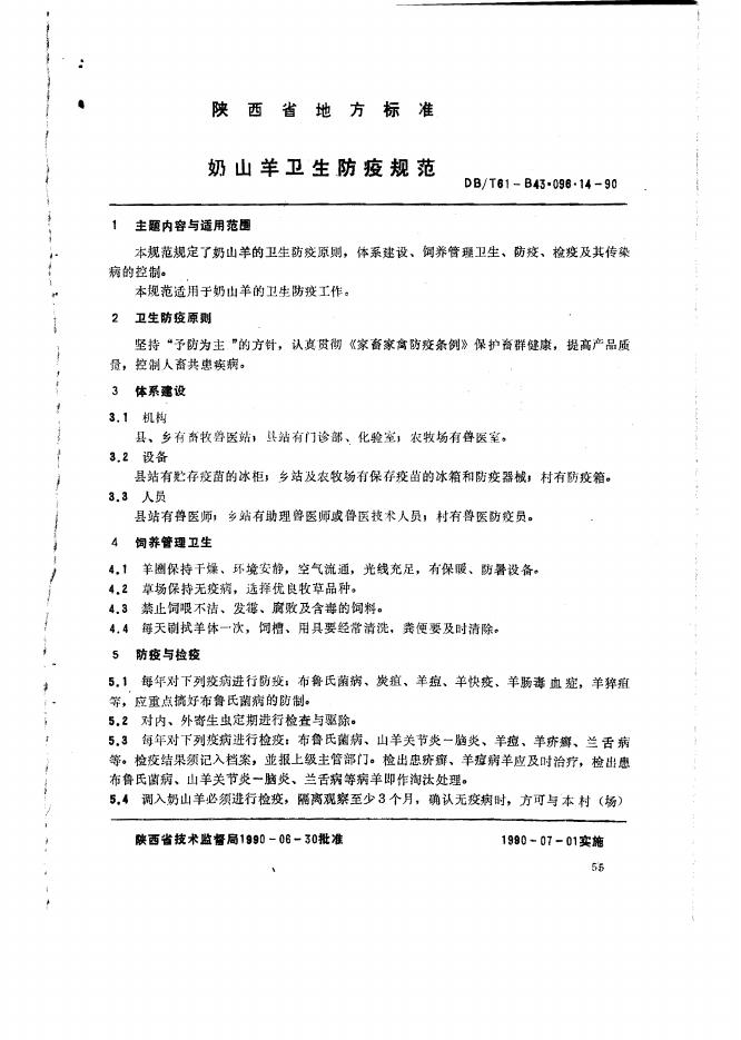 DB61/T B43.096.14-1990 奶山羊卫生防疫规范
