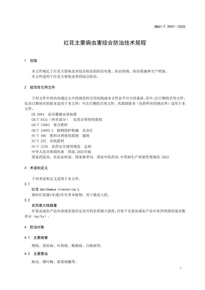 DB41/T 2947-2025 红花主要病虫害综合防治技术规程